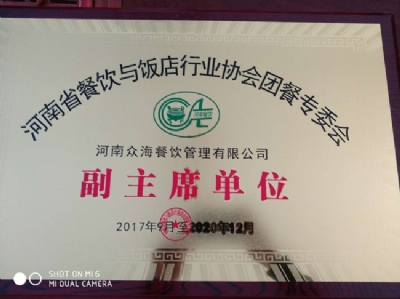 • 18-02-10熱烈祝賀河南眾海餐飲管理有限公司榮獲河南餐飲與飯店協會團餐委
